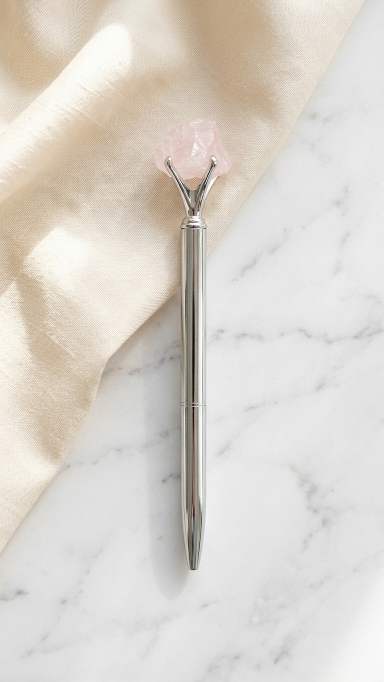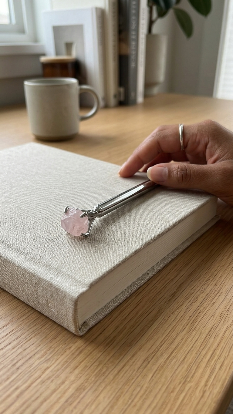 Doğal pembe kuvars detaylarıyla hem şık hem anlamlı bir dokunuş.