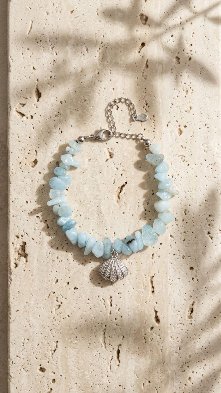 Kırık Aquamarin Çelik Bileklik